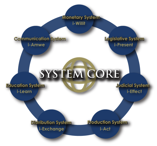 The System Core makes use of a Dual Monetary System; money for Capital Markets, and Earned Equity for Standard Needs provision.- Both systems make use of the Willit Monetary System for the creation of money or the conversion of money into Earned Equity (time and labor).